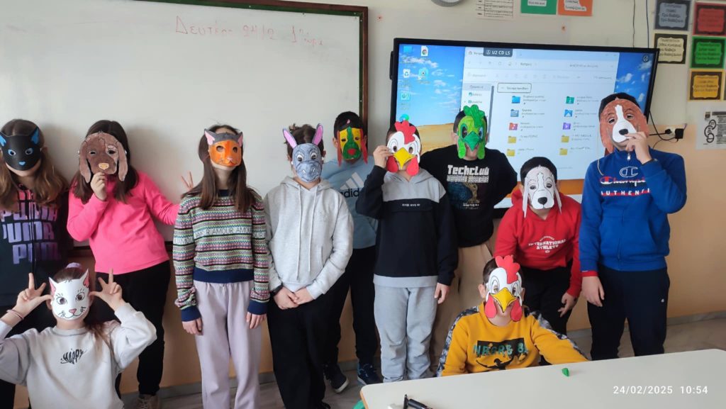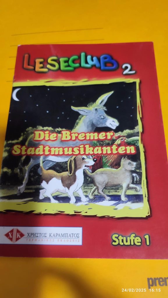 Οι μαθητές των Ε΄ Τάξεων, στο πλαίσιο της γνωριμίας τους με τη γερμανική γλώσσα και τον πολιτισμό της, πραγματοποιήσαν ένα δημιουργικό εργαστήρι παραμυθιού στις τάξεις τους υπό την καθοδήγηση της εκπαιδευτικού Γερμανικών, κυρίας Λεμονούδα Ανέτας. Γνώρησαν το παραμύθι «Οι Μουσικοί της Βρέμης», ένα από τα λιγότερο γνωστά έργα των αδελφών Γκρίμ στην Ελλάδα. Αφού διάβασαν το παραμύθι και στις δύο γλώσσες, δημιουργήσαν τις δικές τους μάσκες, αναπαριστώντας τους αγαπημένους τους χαρακτήρες. Η εμπειρία αυτή γέμισε την ημέρα τους με χαρά και διασκέδαση.